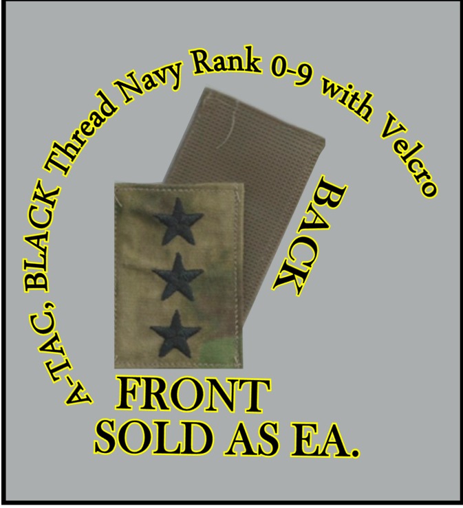 A-TACS NAVY OFFICERS AND PETTY OFFICER rank that measures 2 inches by 2 inches with Velcro(r) backing. The ranks come in BLACK thread