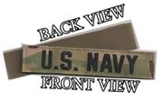 Embroidered MultiCam branch tapes with spice brown letters for MultiCam uniforms. All tapes are made on 1 inch MultiCam fabric strips and are backed with Velcro. The tapes are five inches in length with Velcro sewn to the back and fit the Tru-Spec (r) style uniforms.