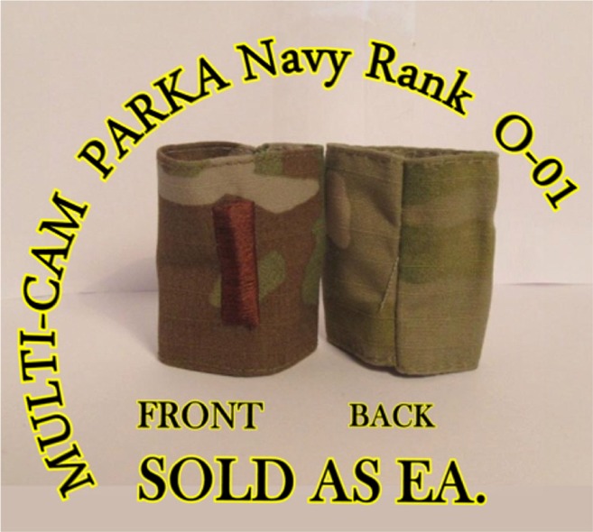 Embroidered MultiCam Gore-Tex(r) rank insignias for the MultiCam Uniforms. The ranks are made from MultiCam material. The ranks are made with standard U.S. Army and U.S. Navy designs.